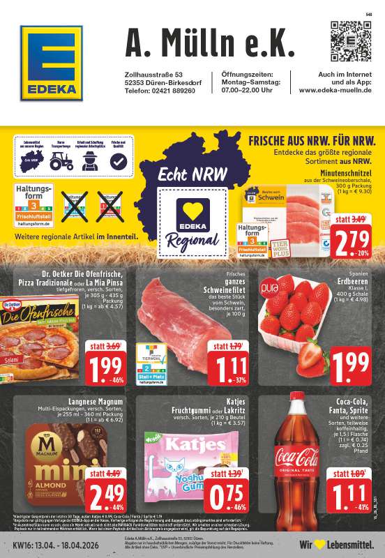 Angebote Die Angebote der Woche sind gültig vom 13.04. bis zum 18.04.2026. Bild zum Vergrößern anklicken oder hier herunterladen PDF-Download Mittagsmenü Bild zum Vergrößern anklicken oder hier herunterladen PDF-Download