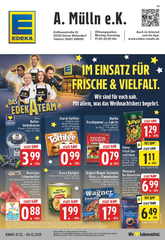 Angebote Die Angebote der Woche sind gültig vom 01.12. bis zum 06.12.2025. Bild zum Vergrößern anklicken oder hier herunterladen PDF-Download Mittagsmenü Bild zum Vergrößern anklicken oder hier herunterladen PDF-Download Produktkategorien Alle Angebote KNÜLLER Fleisch & Wurst Molkerei & Käse Obst & Gemüse Getränke Drogerie Fisch & Meeresfrüchte Grundnahrung Knabbern & Naschen Tiefkühl Non-Food Sonstiges Haus & Heim Bekleidung Tiernahrung
